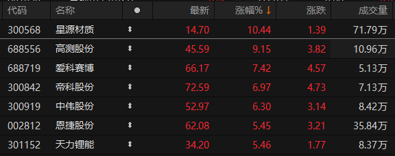 原标题:A股电力设备板块表现活跃 星源材质涨超10%