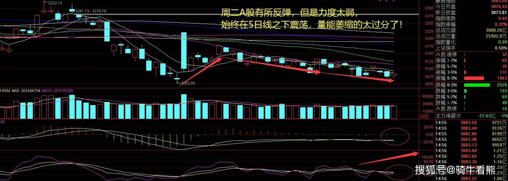 上证指数二早盘出现V型反转,午后仍然在红盘震荡为主,但是没有继续突破向上,仍然还是在5日线之下震荡为主。证券、银行、保险等金融股有所反弹,但是A股并未出现真正意义上拉升,主力资金也没有大力护盘带动金融股的涨停潮。从现阶段的极弱行情来看,还需要更多的催化剂才能让市场走强,关注市场新低后的反弹机会。接下来注意大盘能否在3070点之上稳住。