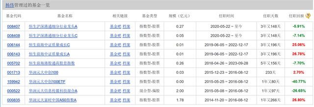 在2只基金清盘终止运作后,杨伟管理的产品仅剩余恒生沪深港通细分行业龙头一只基金了。
