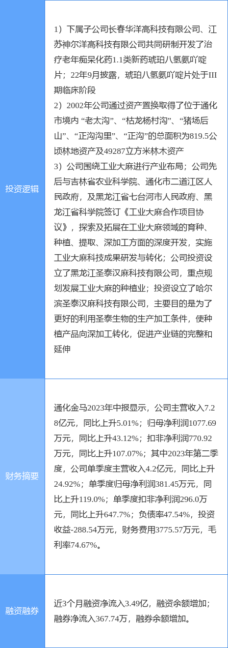 该股为工业大麻,林业,阿尔茨海默病概念热股。