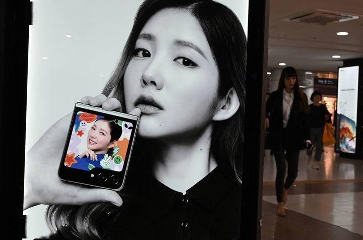 首尔一个购物区的三星Galaxy Z Flip5 手机广告(法新社)