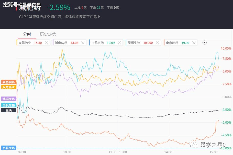 减肥药板块整体深水盘整,最终收跌2.59%。