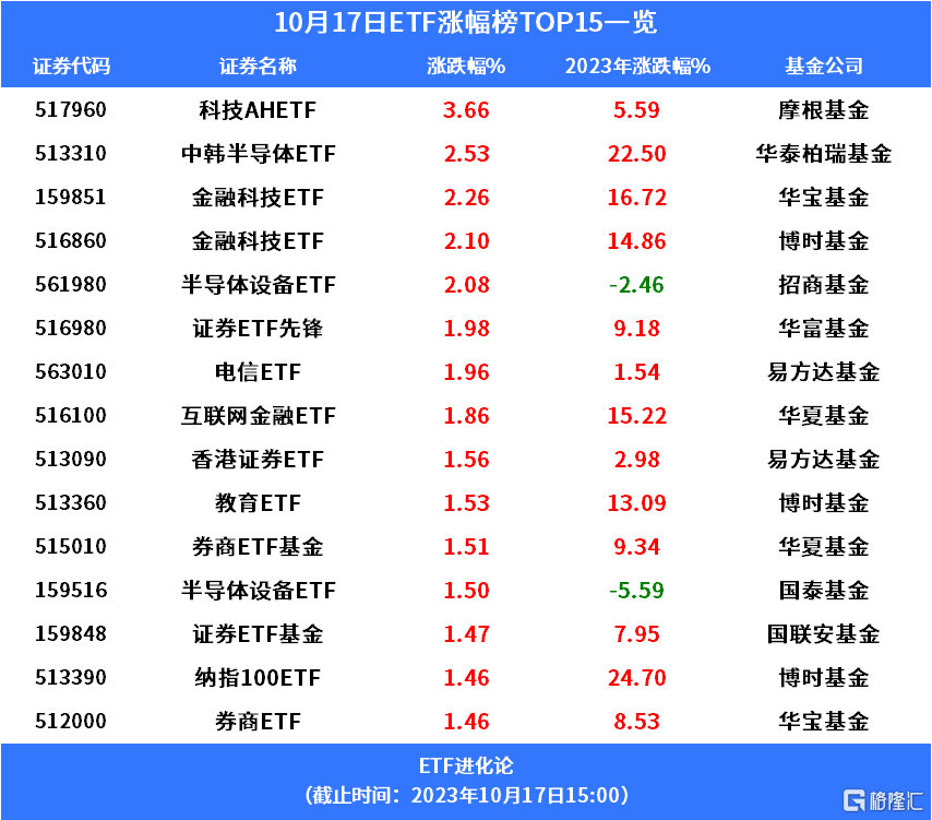 ETF方面,半导体板块涨幅居前,摩根基金科技AHETF、华泰柏瑞基金中韩半导体ETF分别涨3.66%、2.53%。数字货币全天强势,华宝基金金融科技ETF涨2.26%。证券板块上扬,华富基金证券ETF先锋涨1.98%。三大运营商上涨,易方达基金电信ETF涨1.96%。