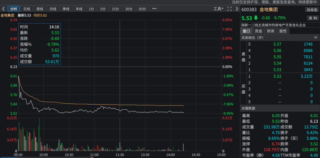 10月17日开盘后,金地集团的股价大幅下跌,盘中一度跌停。在债券市场,“16金地02”一度跌超25%,“21金地01”跌超21%,“21金地03”跌超17%。