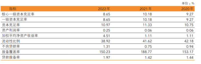 自2021年开始,温州银行的核心一级资本充足率呈现持续下降趋势,虽未低于监管要求的7.5%,但已达该行近年最低值。2022年时,一级资本充足率降至8.65%,逼近监管指标要求的8.5%。