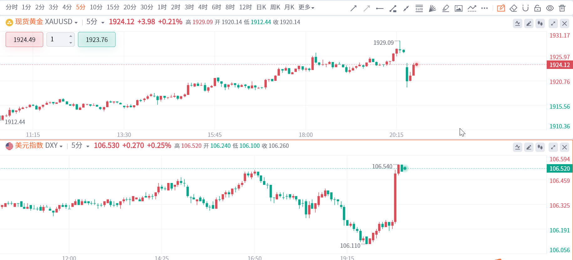 数据公布后,美国国债收益率走高,10年期国债收益率当日上涨8.40个基点,达到4.794%。美元指数短线走高超22点。现货黄金短线走低5美元,随后有所反弹。