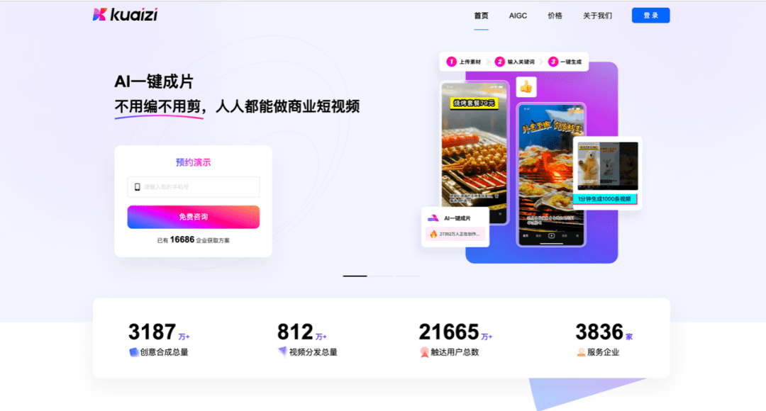 以名创优品为例,他们的店长可能需要在抖音、小红书等短视频平台上多次发布基于位置的内容,以吸引本地受众,如果纯靠人工可能成本是非常高昂的。筷子科技的解决方案是通过AI混剪、配音和特效等功能,帮助店长快速生成多个视频样本,并基于推荐规则提供哪些视频效果更好的建议。这使得店长可以轻松一键生成主题内容,覆盖特定地域的人群,从而提高视频获客效果。