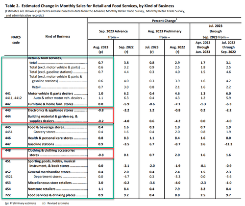 从上涨分项来看,杂项商店零售销售遥遥领先,环比增长了3%,非商店零售商的销售环比增长了1.1%,而在8月杂货零售销售大幅下滑。