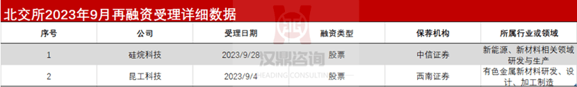 三、9月深沪再融资“零受理”,北交所再融资新增受理2家
