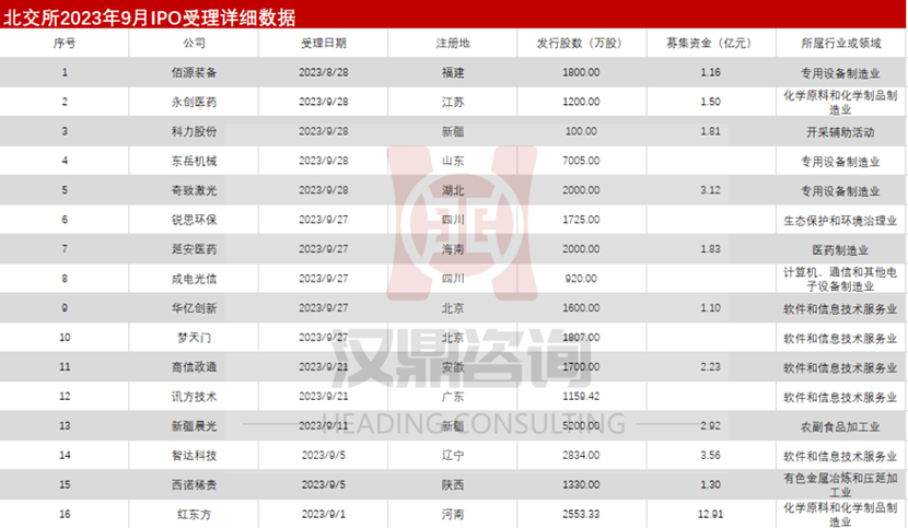 (二)9月北交所新增受理IPO企业共计16家,占总体受理比例59.3%
