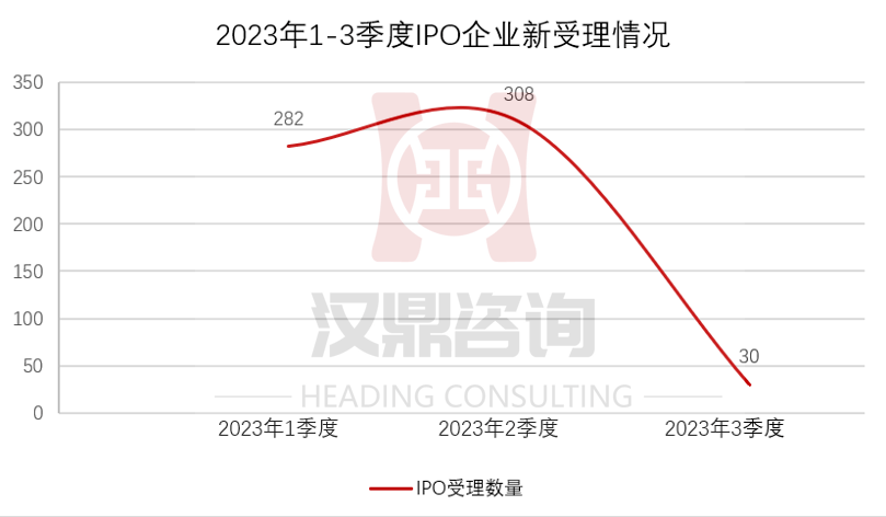 据汉鼎咨询统计,今年7-8月A股新增受理仅3家企业,且均为申报北交所上市企业;而沪深交易所更是罕见的连续两个月零受理,另外,从2023年各季度数据环比来看,第三季度受理企业数量(30家)相较一季度(308家)和二季度(282家)出现断崖式下降,阶段性收紧趋势明显。