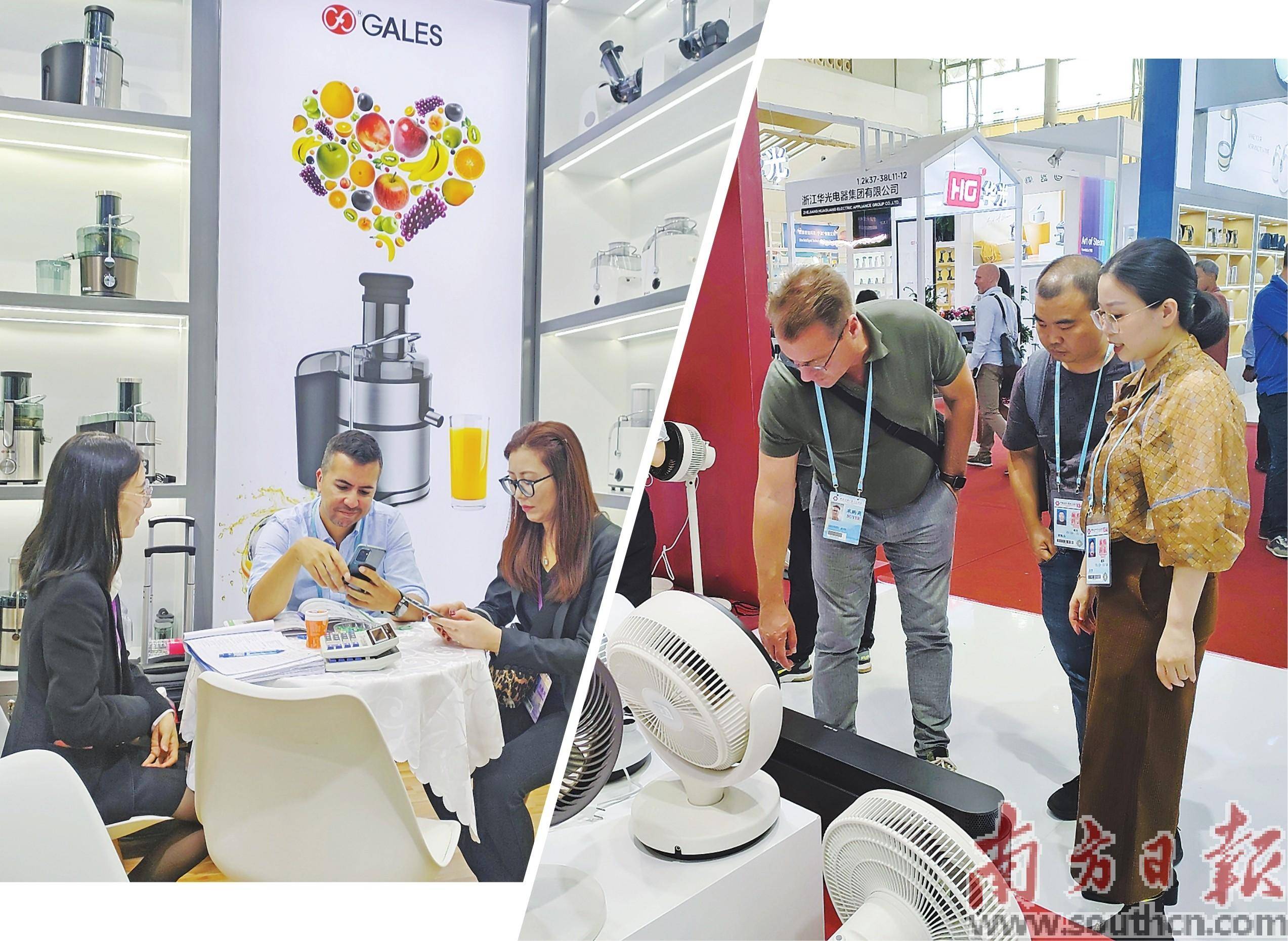在主营榨汁机、搅拌机、咖啡机等厨房小家电的佛山市家乐仕电器科技有限公司(下称“家乐仕”)展位,出口副总经理梁肖夷统计,开展当天,同样有超过100位客户走进展位。
