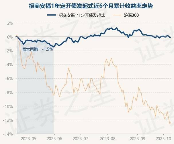 证券之星消息,10月17日,招商安福1年定开债发起式最新单位净值为1.0317元,累计净值为1.0418元,较前一交易日上涨0.01%。历史数据显示该基金近1个月下跌0.23%,近3个月下跌0.15%,近6个月下跌0.09%,近1年上涨5.74%。该基金近6个月的累计收益率走势如下图: