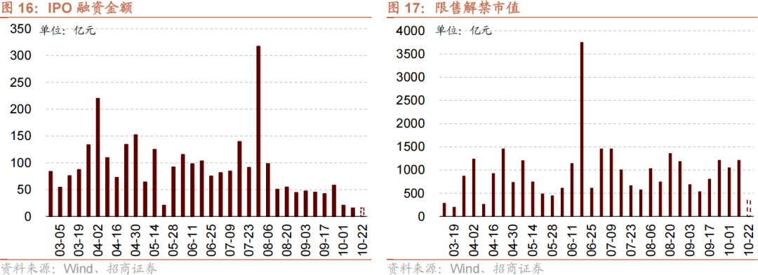 资金需求方面,上周(10/9-10/13)IPO融资金额回落至15.5亿元,共有4家公司进行IPO发行,截至10月13日公告,未来一周将有2家公司进行IPO发行,计划募资规模15.9亿元。重要股东净减持规模缩小,净减持8.7亿元;公告的计划减持规模0.0亿元,较前期持平。