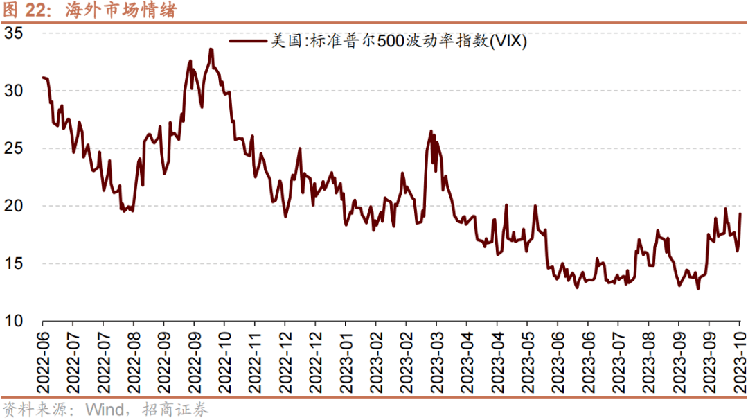 上周(10/9-10/13)标普500指数下跌0.2%,纳斯达克指数上涨0.4%。上周VIX指数回升,较前期(10月6日)上升1.9点至19.3,市场风险偏好下降。