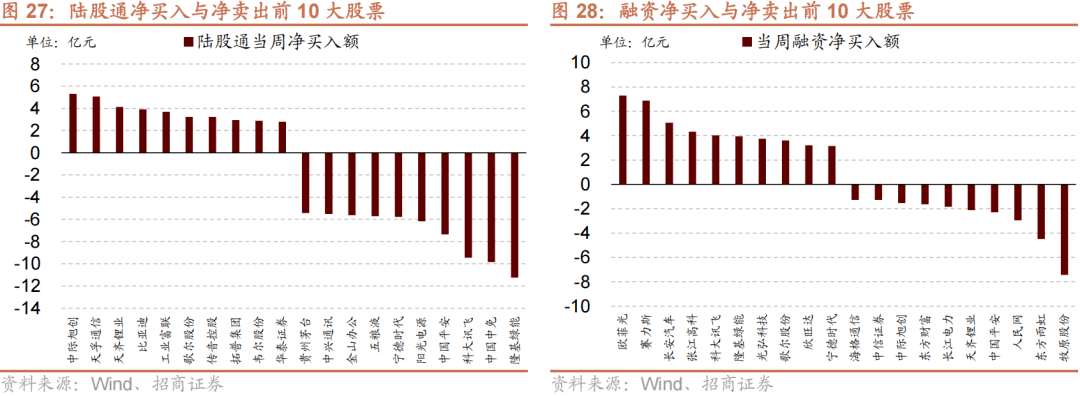 个股偏好上,陆股通净买入规模较高的为中际旭创(+5.3亿元)、天孚通信(+5.1亿元)、天齐锂业(+4.1亿元)等;净卖出规模较高的为隆基绿能(-11.2亿元)、中国中免(-9.8亿元)、科大讯飞(-9.5亿元)等。融资净买入规模较高的为欧菲光(+7.3亿元)、赛力斯(+6.9亿元)、长安汽车(+5.1亿元)等;净卖出规模较高的为牧原股份(-7.4亿元)、东方雨虹(-4.5亿元)、人民网(-3.0亿元)等。