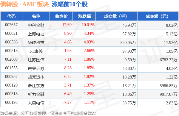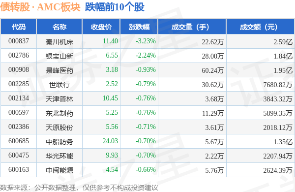 北向资金方面,当日债转股 · AMC板块北向资金持股市值为273.63亿元,减持0.76亿元。其中增持最多的是东吴证券,增持了0.26亿元。减持持最多的是山东黄金,减持了1.01亿元。债转股 · AMC板块北向资金持股变动明细见下表: