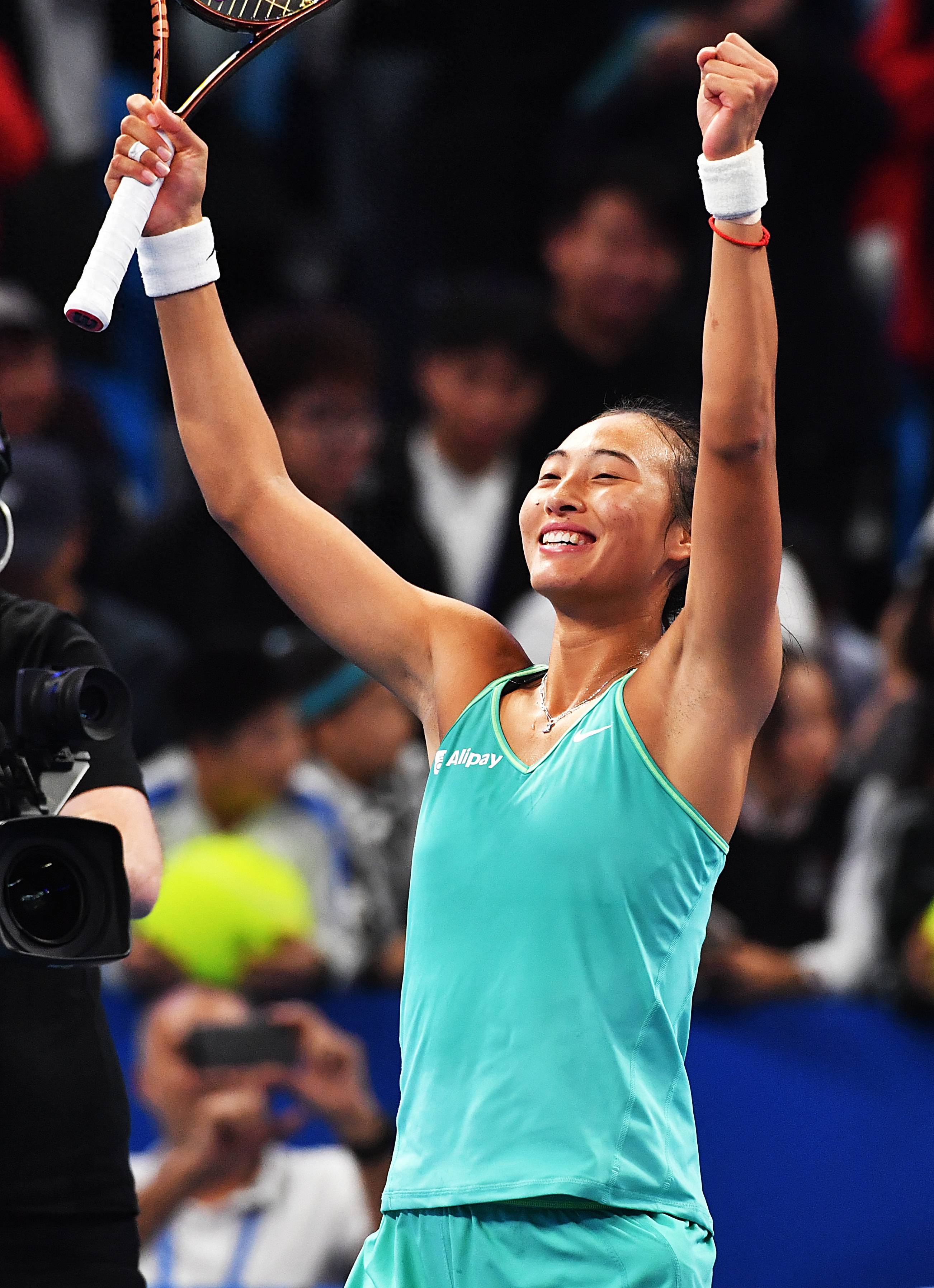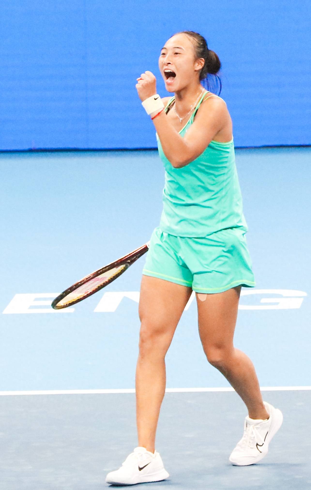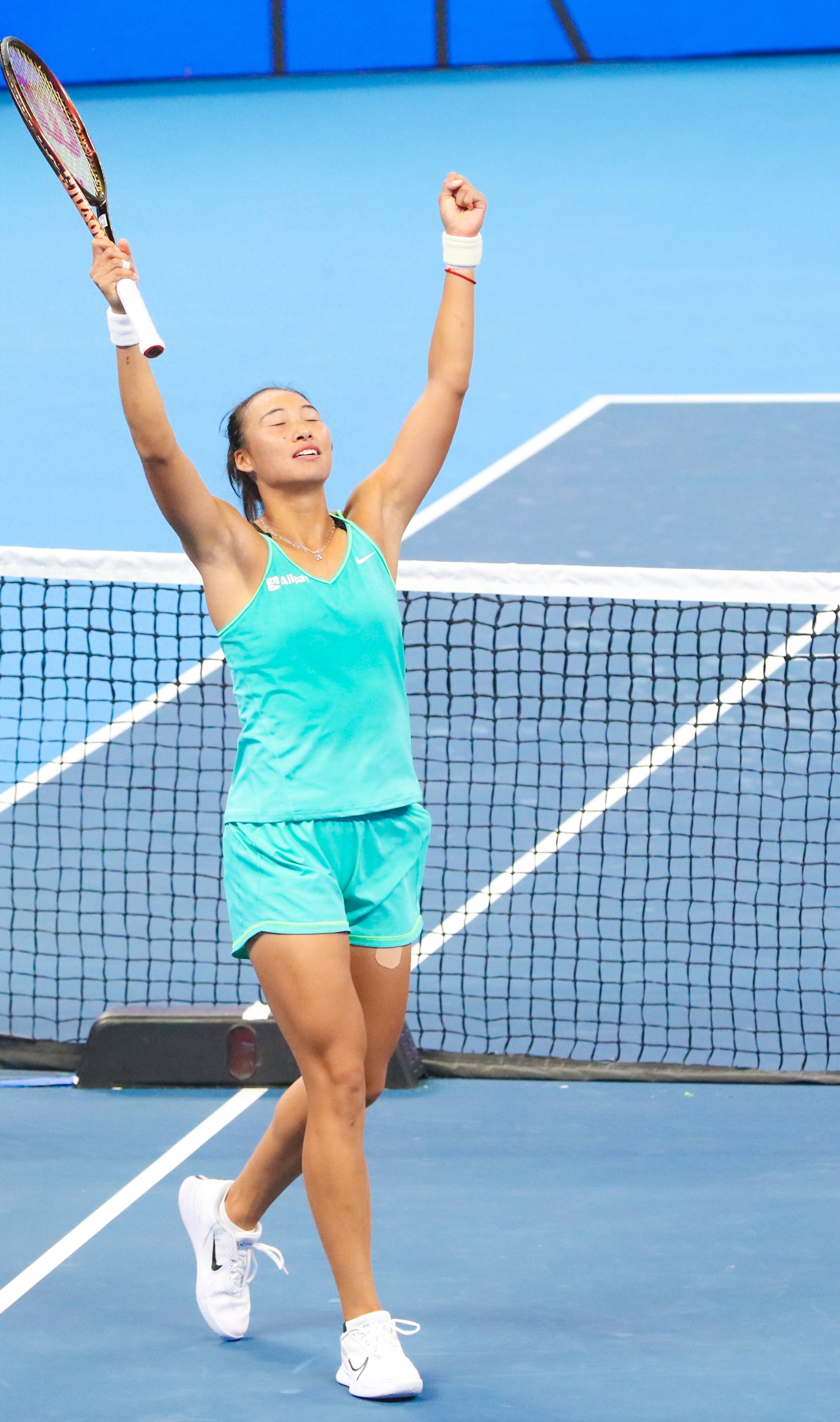 10月13日,2023交通银行郑州网球公开赛在郑州继续进行,郑钦文战胜乌克兰选手卡利尼娜,晋级4强。马健 图