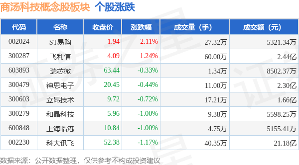 证券之星消息,10月17日商汤科技概念股板块较上一交易日下跌0.69%,科大讯飞领跌。当日上证指数报收于3083.5,上涨0.32%。深证成指报收于9940.22,上涨0.15%。商汤科技概念股板块个股涨跌见下表: