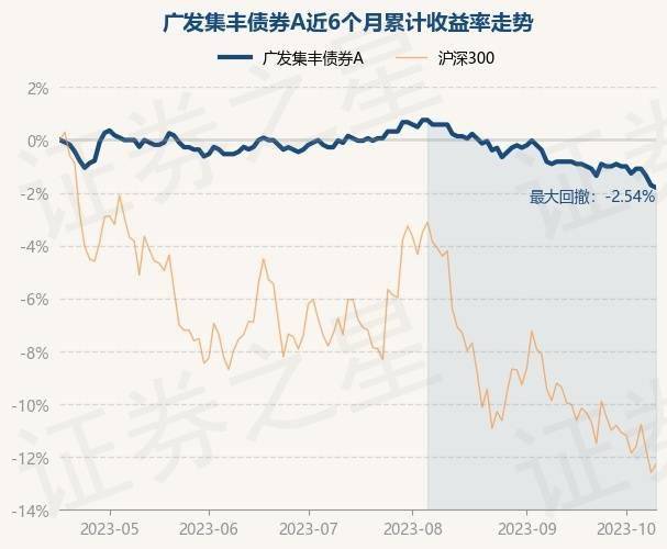 证券之星消息,10月17日,广发集丰债券A最新单位净值为1.118元,累计净值为1.362元,较前一交易日下跌0.09%。历史数据显示该基金近1个月下跌0.89%,近3个月下跌1.76%,近6个月下跌1.76%,近1年上涨1.82%。该基金近6个月的累计收益率走势如下图:
