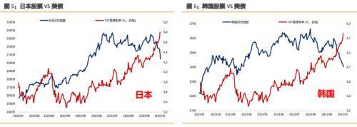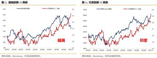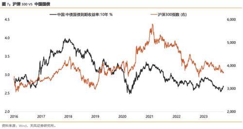 其次,中期趋势维度来看,沪深 300、恒生科技为代表的 A 股顺周期板块,趋势还是由中 国基本面决定,因此中国国债利率的运行方向和沪深 300 一致。而美联储的影响更多是在于斜率。