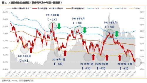 A:中期维度上,沪深 300 和中国国债,都反映中国经济的名义增长,那么把两类资产组合在一起,代表的是两类资产隐含了怎样的经济预期,+2X 标准差代表经济预期极度乐观、 -2X 标准差代表经济预期极度悲观。另外一方面,从大类资产配置的角度上,核心指标也 代表了股债之间的性价比关系到了怎样一个程度。