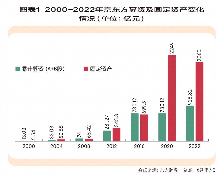 京东方经营的显示面板行业属于典型资本密集型的重资产行业,重资产模式在资产负债表的主要体现科目是固定资产和在建工程,2022年公司固定资产规模为2060亿元,在建工程433.9亿元,合计规模高达2494亿元,如此庞大的资产规模,致使融资渠道的顺畅在很大程度上影响公司的扩张节奏,从目前来看,公司资金来源主要分为贷款和二级市场增发募资。