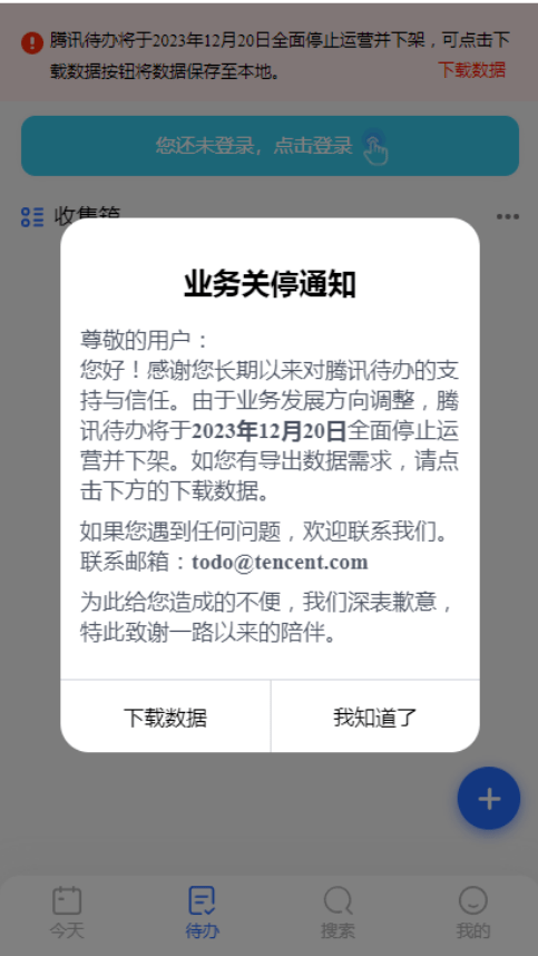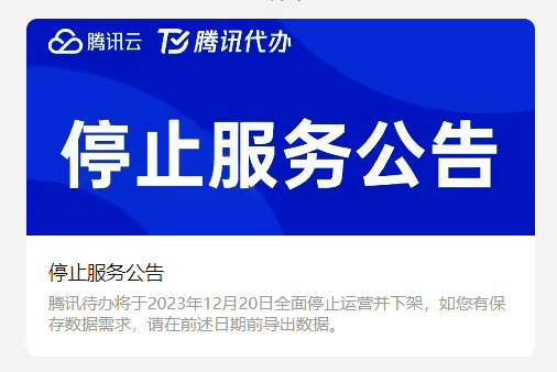 同时,官方表示,“如您有保存数据需求,请进入腾讯待办小程序根据页面指引在前述日期前导出数据。”