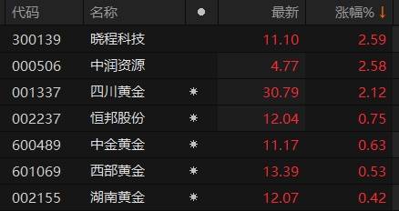 上证报中国证券网讯 10月18日早盘,A股贵金属板块盘初活跃。9时36分,晓程科技、中润资源、四川黄金涨超2%,恒邦股份、中金黄金跟涨。