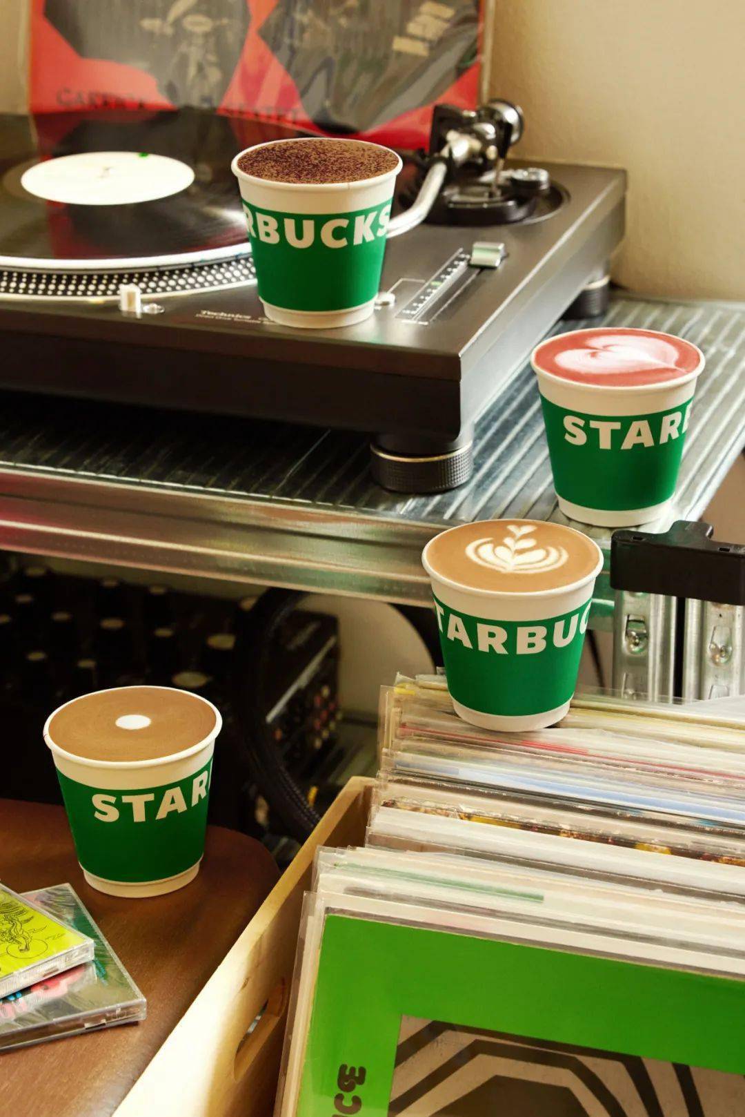新系列还配有自己的专属纸杯。杯身选用绿围裙同款色(Apron Green),配上 logo 文字。双层杯型设计也具备隔热防烫的特性。