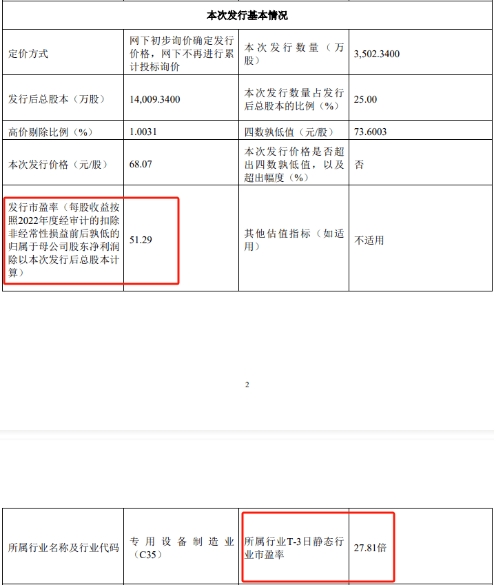 上市发行公告显示,浙江国祥该次IPO发行价格为68.07元/股,对应该公司2022年扣除非经常性损益前后孰低的摊薄后市盈率为51.29倍。