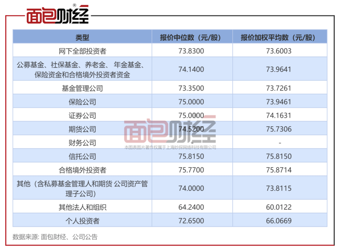 发行公告显示,基金管理公司报价加权平均数约为74元/股。
