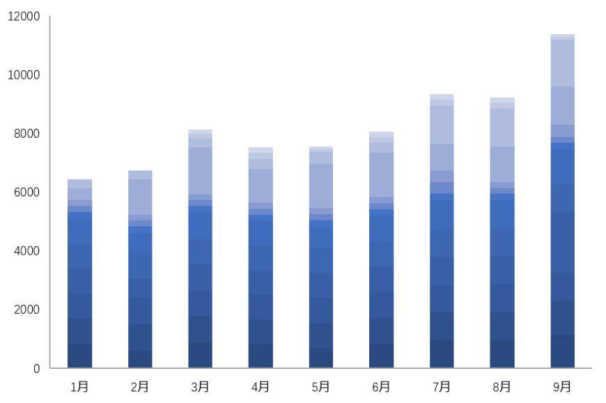 A股股票型ETF份额变化情况(月度值,截至2023年9月末)