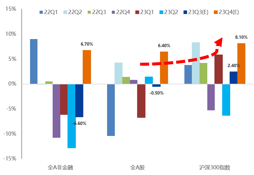 A股单季度净利润增速预期(天风证券,2023年10月初)