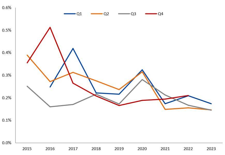 观察历史走势,四季度债市呈现出波动率放大的季节性特征,从10年前国债期货上市至今,多数年份下四季度的波动率处于全年中位数以上。