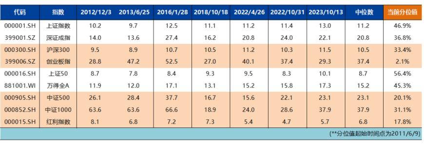 从历轮A股低点主要指数估值水平对比看,目前A股绝对估值整体处低位区间。再从相对估值水平看,以股债风险溢价为代表,A股亦处高分位区间,从横向对比看,其在大类资产中亦处显著的低估状态。
