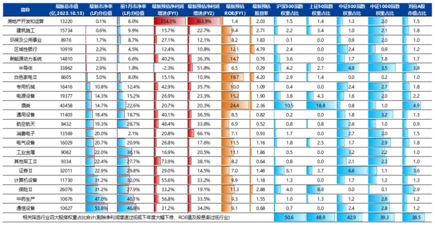 基于“业绩、股息率、估值”三大维度,相关行业四大股指占比统计