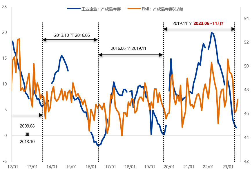 从相关最新数据看,虽然M2-M1增速剪刀差仍处高位、企业端货币活化程度偏低,但“宽信用”总体进程依旧在稳步推进。与此同时,从库存周期规律看,其完整的上行、下行阶段持续时间为36~48个月。而本轮周期开始于2019年12月,以此看,预计在2023年Q4结束下行阶段,转而进入新一轮周期的上行阶段。而从印证数据看,当前多数行业已进入被动去库、主动补库阶段,亦能提高此判断的置信度。