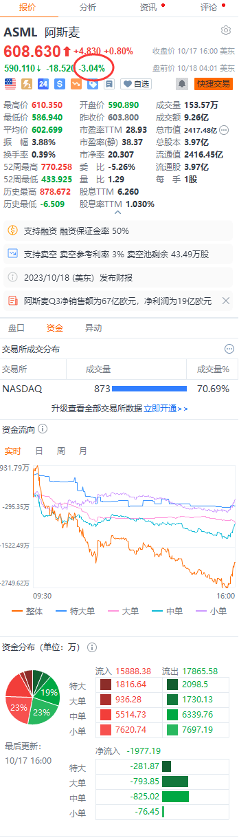 阿斯麦美股盘前跌超3%