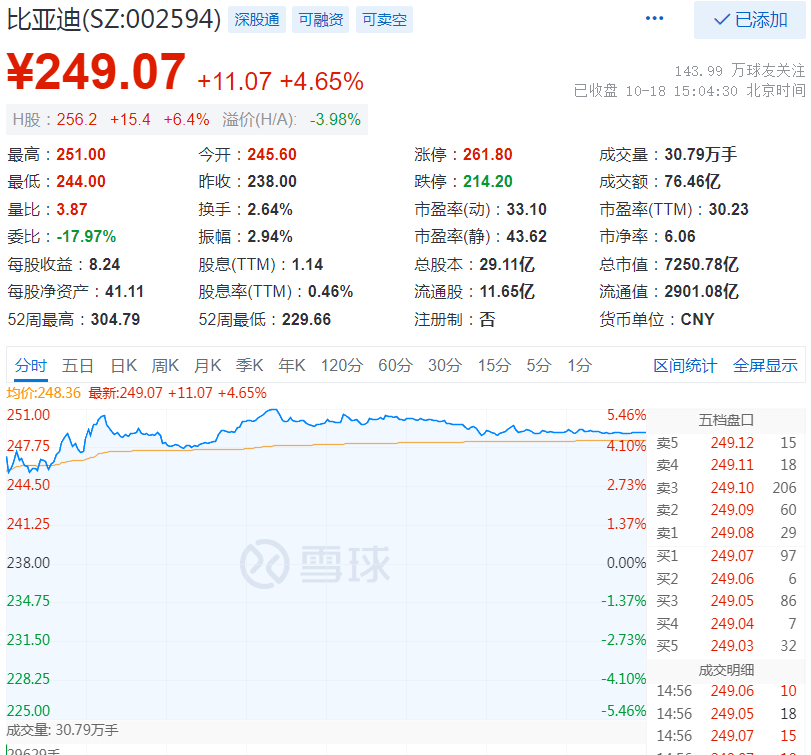 比亚迪在深交所发布2023年前三季度业绩预告,预计报告期内归属于上市公司股东的净利润为205亿至225亿元,同比增长120%-142%;扣除非经常性损益后的净利润为183亿至202亿元,同比增长119%-141%。
