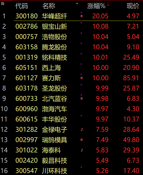 华为汽车产业链继续爆发,赛力斯尾盘涨停,录得9天5板,成交额近100亿元。