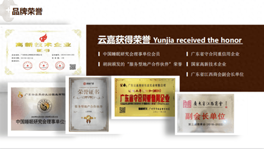 据悉,云嘉集团自成立以来取得了令人瞩目的成就,获得多项荣誉认可。先后获得中国睡眠研究会理事单位会员、广东省守合同重信用企业、国家高新技术企业、广东省江西商会副会长单位、胡润颁发的“服务型地产合作伙伴”等众多荣誉。