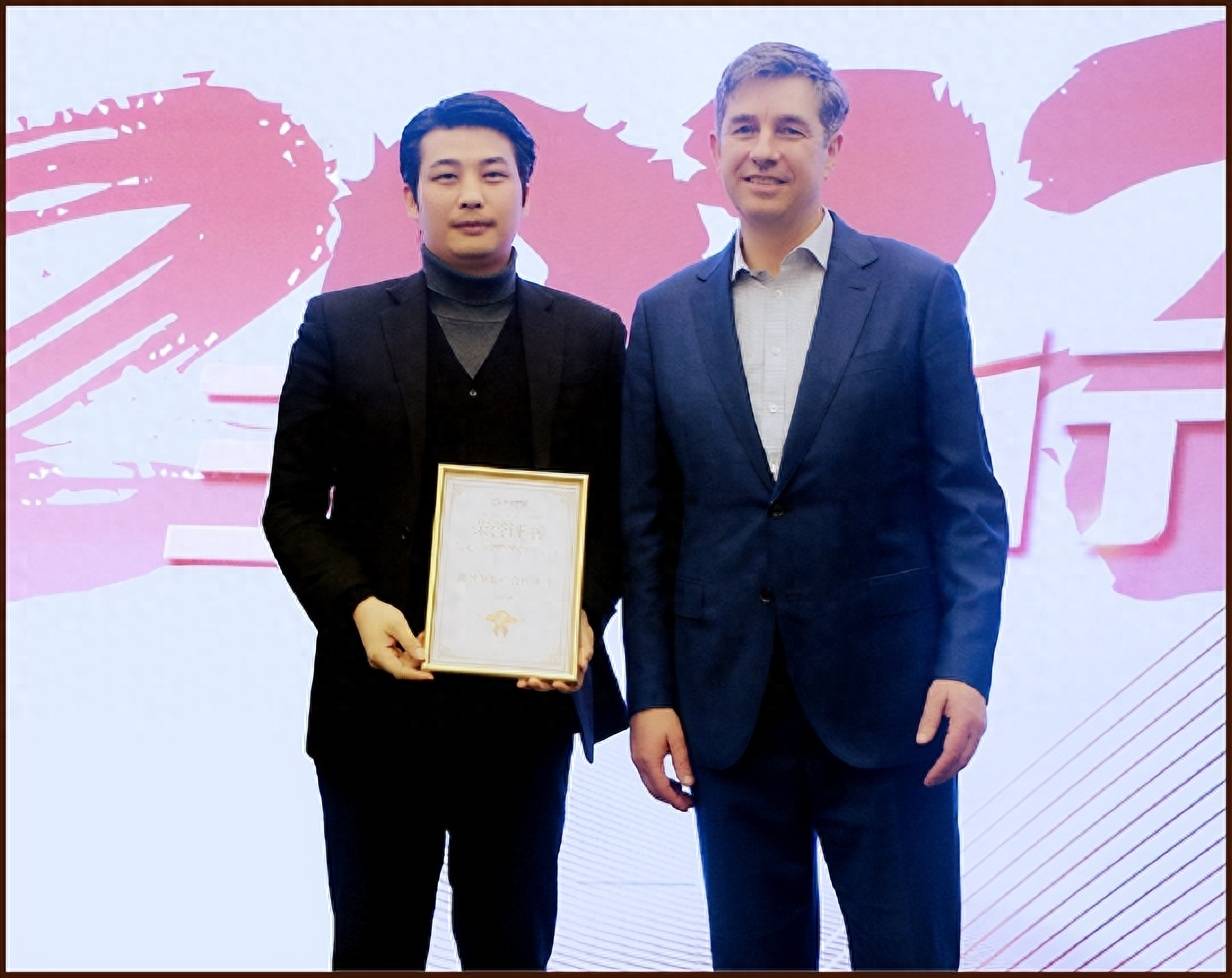 胡润百富榜授予云嘉“服务型地产合作伙伴”荣誉,右为胡润,左为严考鑫。