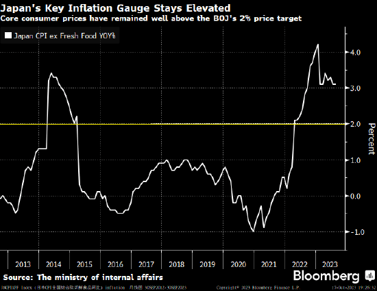 知情人士称,日本央行官员认为该行对始于4月财年剔除生鲜食品的消费者价格指数(CPI)的预测可能会上修至2%或更高水平,这将高于7月预测的1.9%。