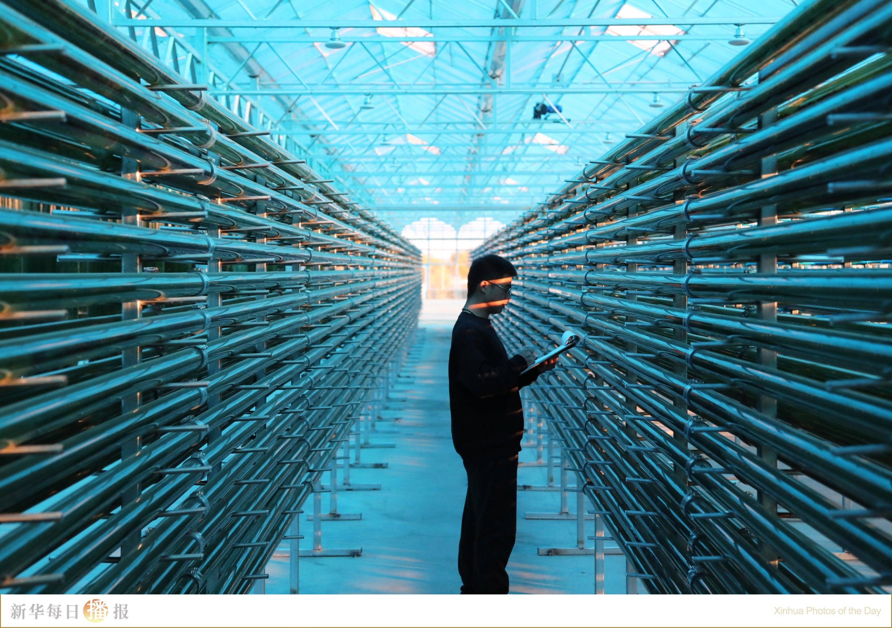 10月17日,园区工作人员在查看管道式养殖的螺旋藻情况。近年来,内蒙古鄂尔多斯市鄂托克旗螺旋藻产业呈现强劲发展势态,已成为当地特色支柱产业。近期,位于鄂托克旗的螺旋藻产业园区在养殖工艺上进行创新,采用柱式和管道式养殖,节约用地的同时提升生产效率。产业园年产螺旋藻粉5200多吨,其产品80%以上销往海外40多个国家和地区。
