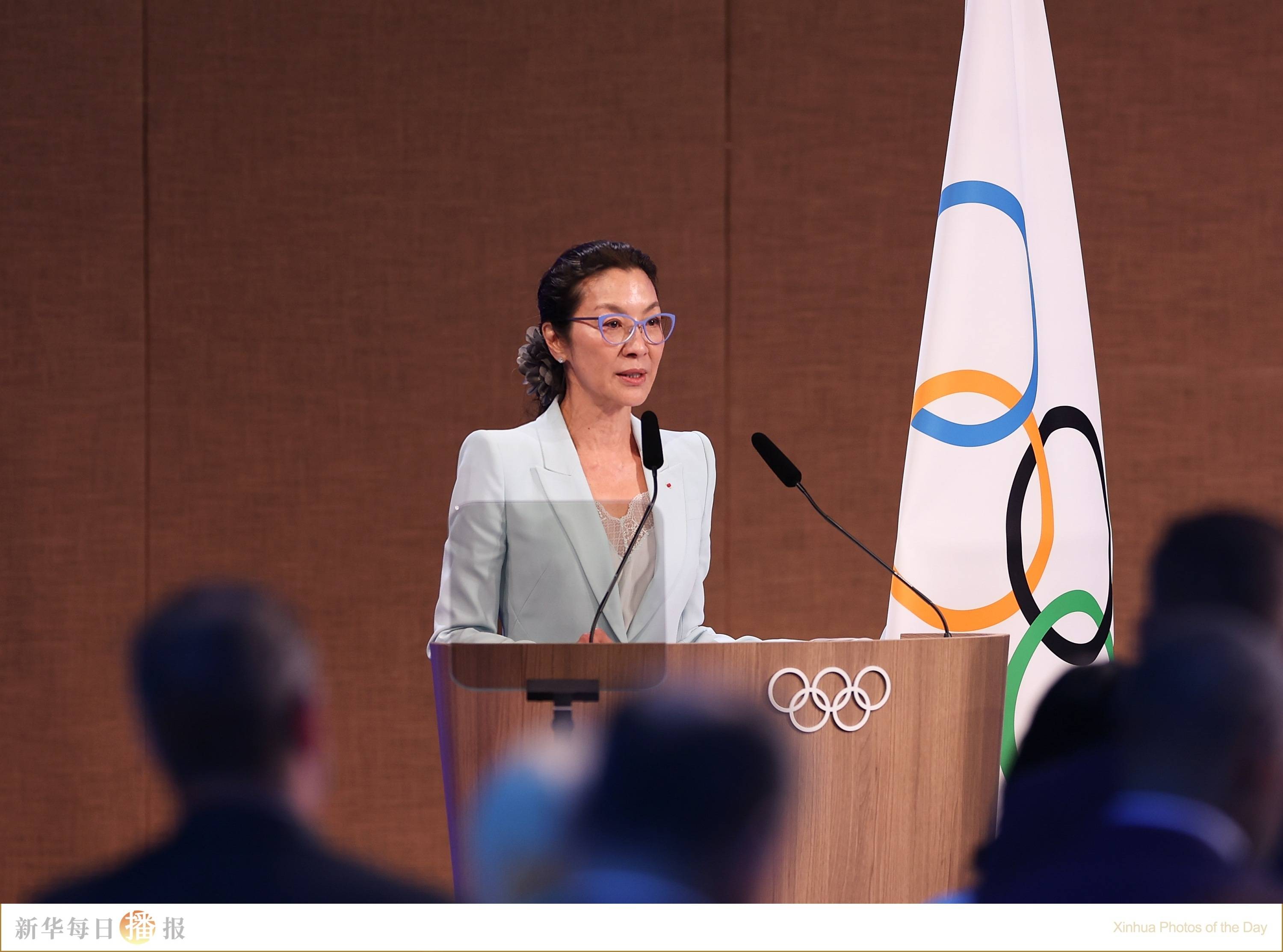 10月17日,新任国际奥委会委员杨紫琼宣誓。当日,在印度孟买举行的国际奥委会第141次全会在完成全部议程后闭幕,会上投票选举产生八名新委员。国际乒联主席佩特拉·索林、华裔演员杨紫琼等此前获得提名的八位候选人悉数顺利当选。