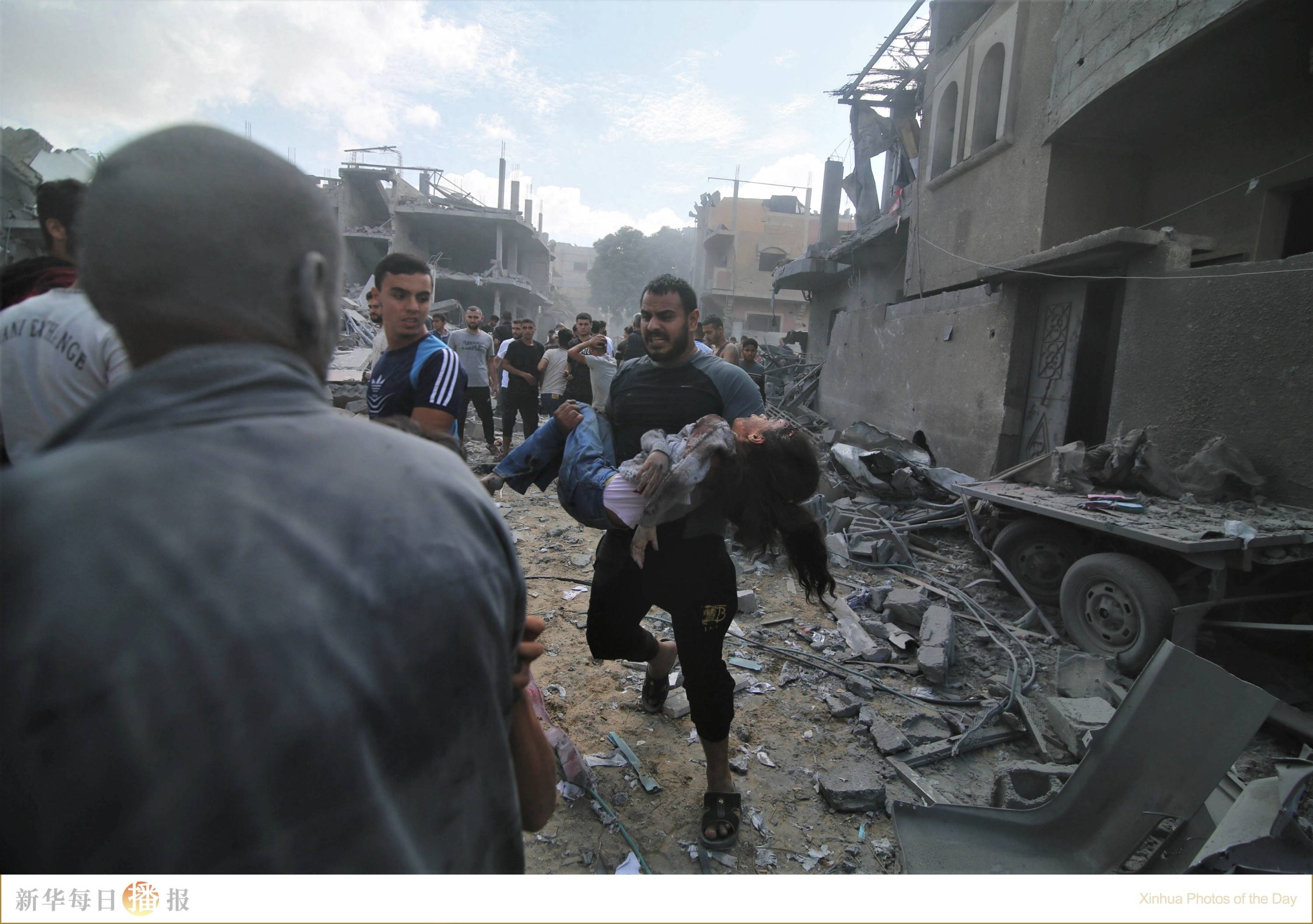 10月17日,在加沙地带南部城市拉法,一名男子转移伤者。据巴勒斯坦卫生部的数据,截至当地时间17日17时30分,在本轮巴以冲突中,加沙地带死亡约3000人,受伤12500余人;约旦河西岸死亡61人,受伤1250余人。