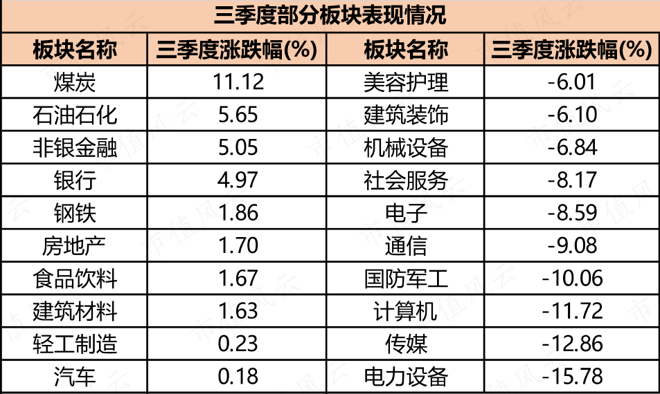 三季度大盘的风格在发生变化,31个申万行业有10个板块上涨,跌超5%的也有10个。其中传统能源行业煤炭、石油石化表现出色,而二季度被炒热的计算机、传媒、电子均在退潮。