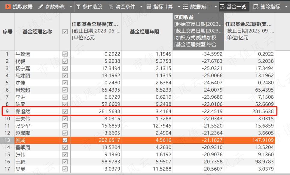 施经理这6只产品三季度合计大亏40亿,着实让人心痛。巨大亏损也让施成管理的基金规模大减,中报还手握202亿,到了三季度末仅剩147亿。