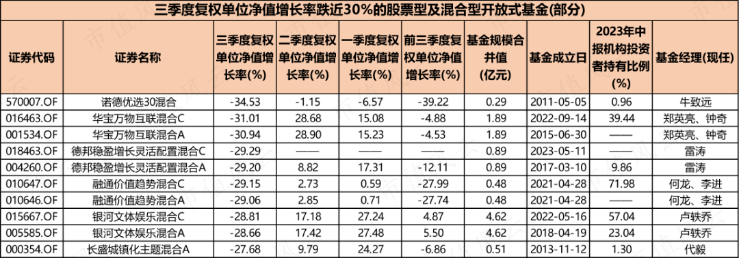 而诺德优选30混合、融通价值趋势混合A就惨到家了,年内分别大跌40%和27.9%,而且市值也不足5000万。